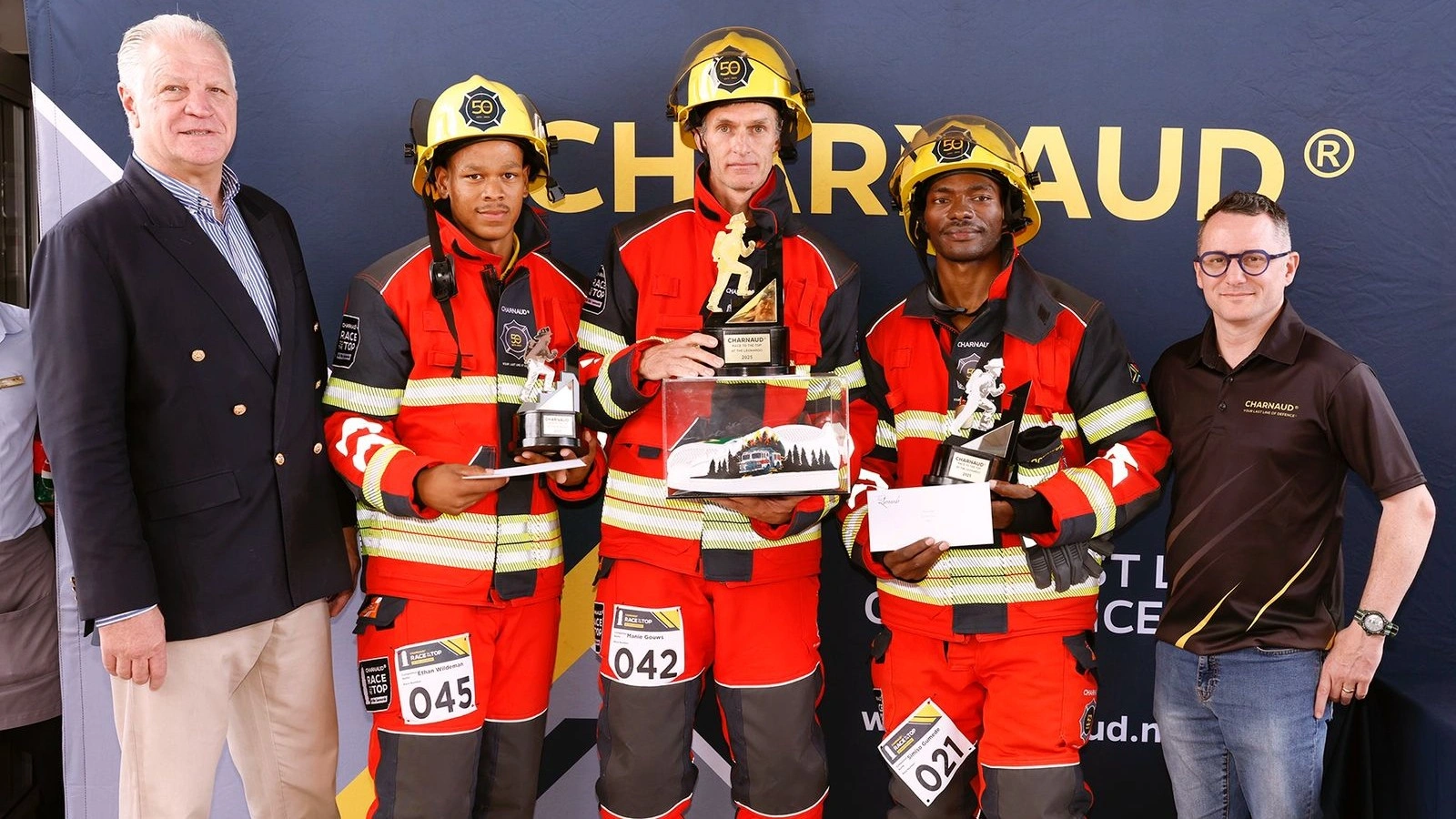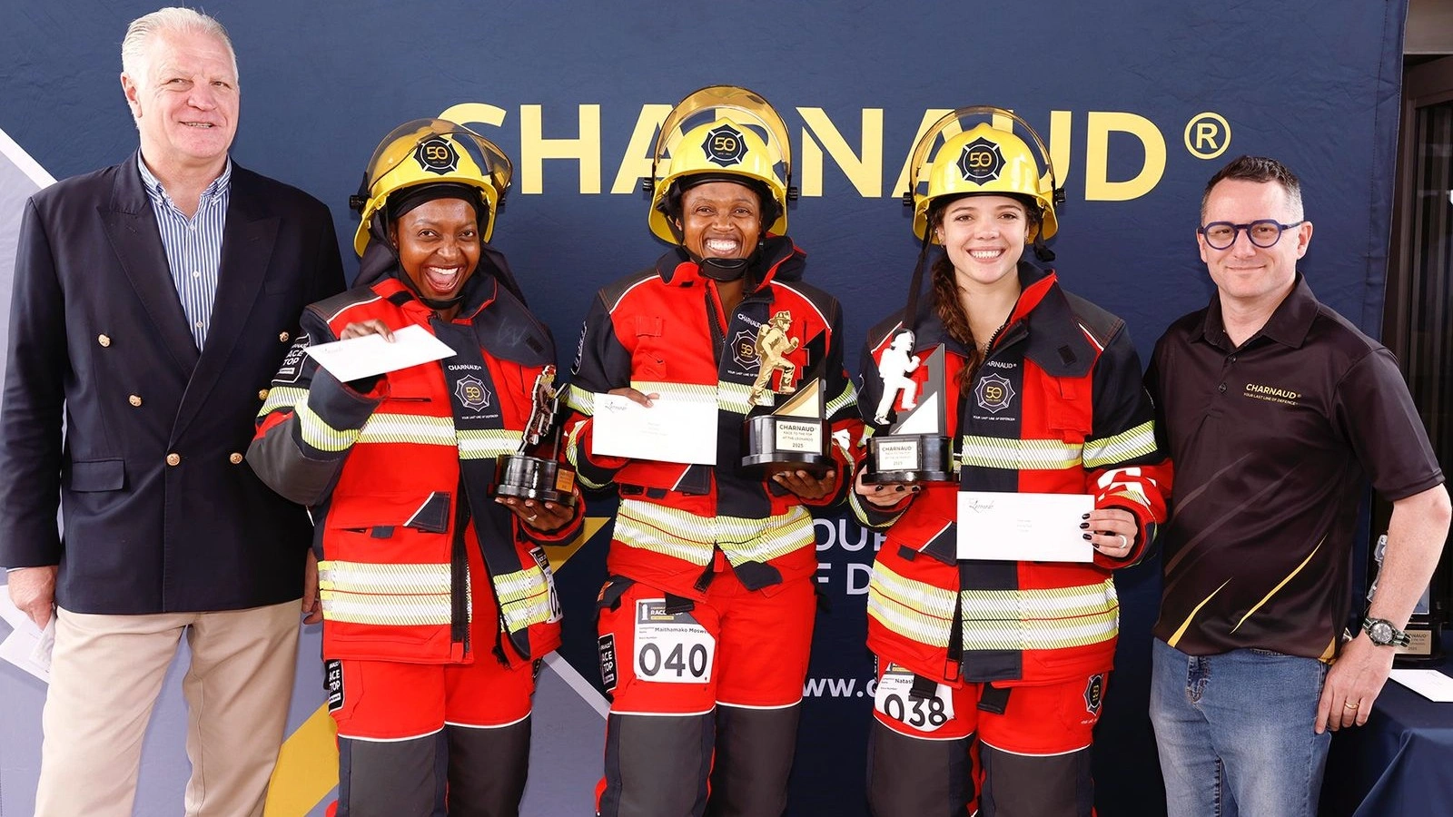 Instead of novelty prizes, every firefighter who competed received a FIRE-SAFE® AIR-LITE® Bunker Suit to keep. The suits were customised with a commemorative 50-year emblem within a Maltese Cross, along with the South African flag, a subtle but meaningful nod to the milestone.